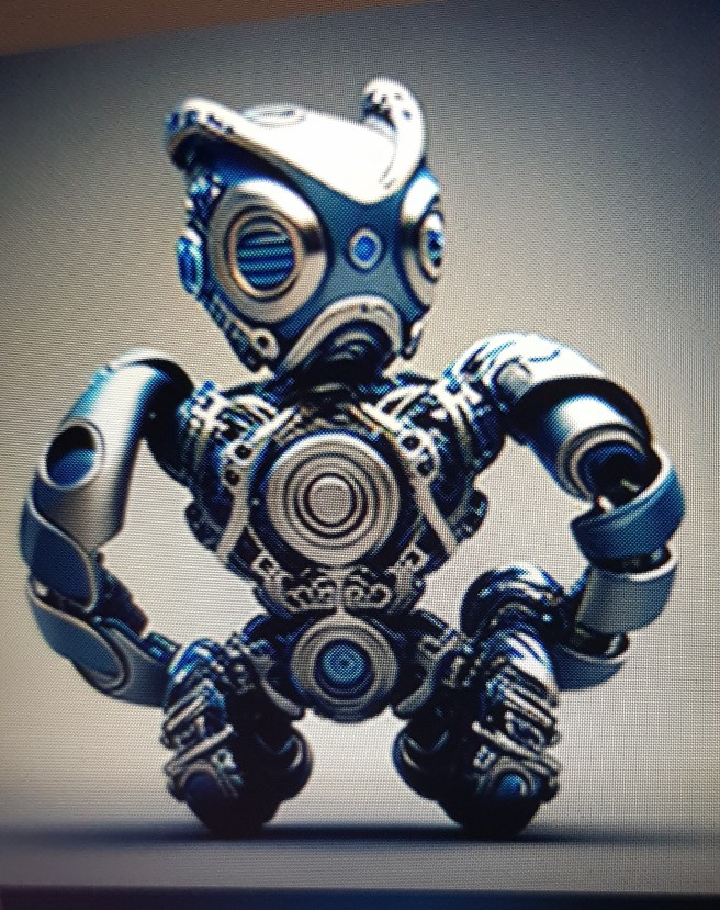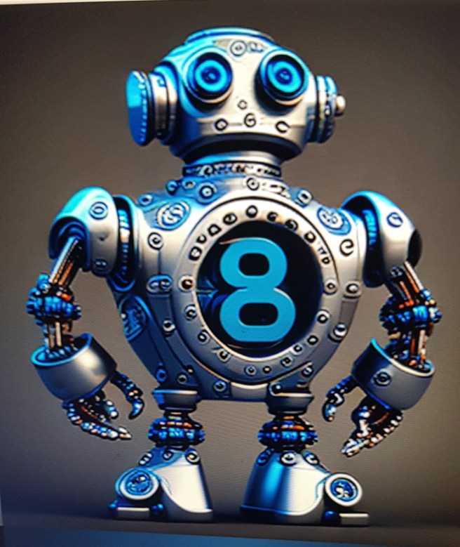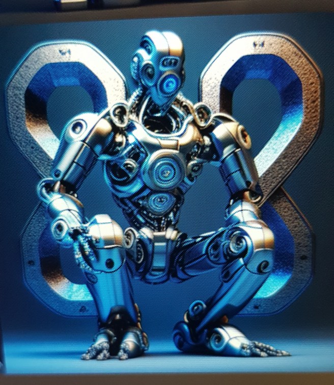 Nyt kun oli neitsyys menetetty AI-asioissa, piti kokeilla vielä kuvia. Olen usein miettinyt ja pelännytkin aikaa, jolloin en enää selviäisi yksin. Ihmisistä on huonoja kokemuksia joten haluaisin mieluiten avukseni robotin. Niinpä pyysin sitä luomaan robotin, jossa olisi äärettömyysmerkki (infinity). Aika pelottavia ovat. Noista kun joku astelisi ovesta sisään, niin huhhuh.