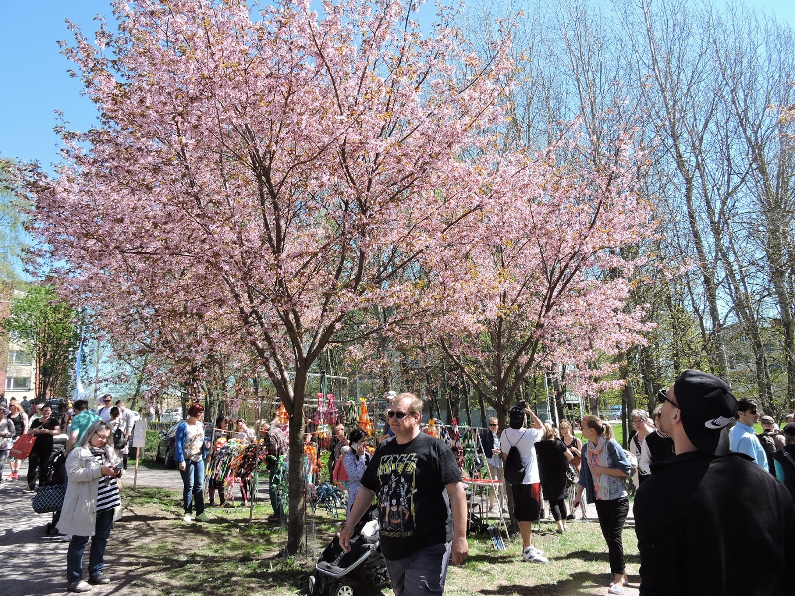 Hanami-juhla kirsikkapuistossa Helsingissä.